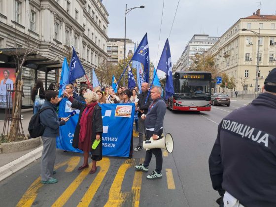 Nakon okupljanja na Trgu Nikole Pašića, članovi Samostalnog sindikata kulture Srbije i Granskog sindikata kulture, umetnosti i medija „Nezavisnost“ u protestnoj šetnji stigli su do Ministarstva finansija, gde su predali svoje zahteve i zatražili hitan sastanak sa ministrom Sinišom Malim.